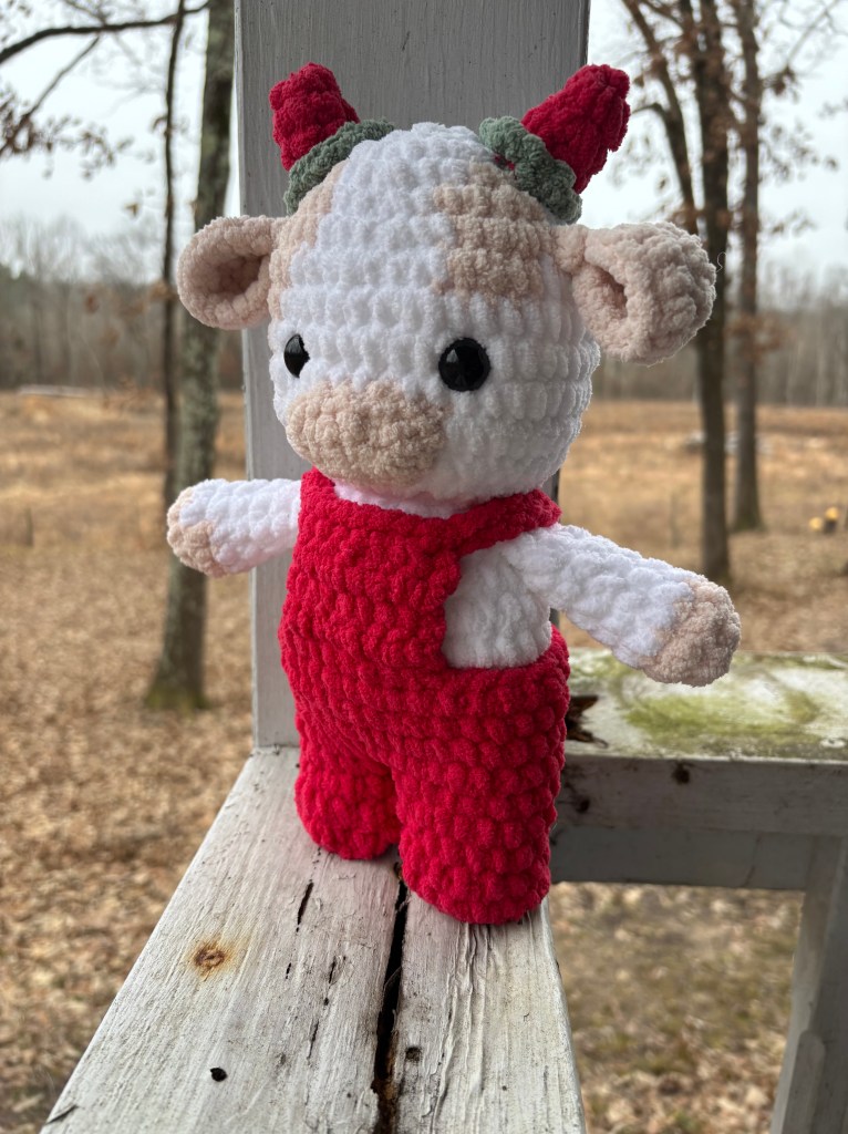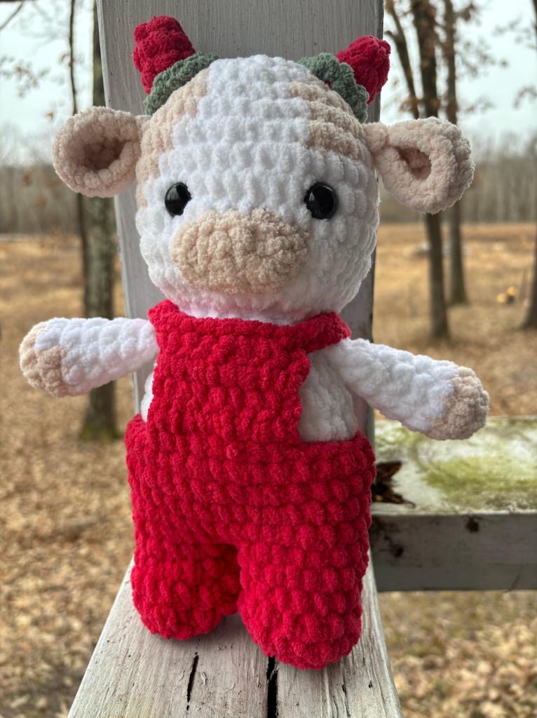 The strawberry cow pattern is available on Etsy if you want to make your own, or if you’d like to order one she’s available in my Etsy shop.