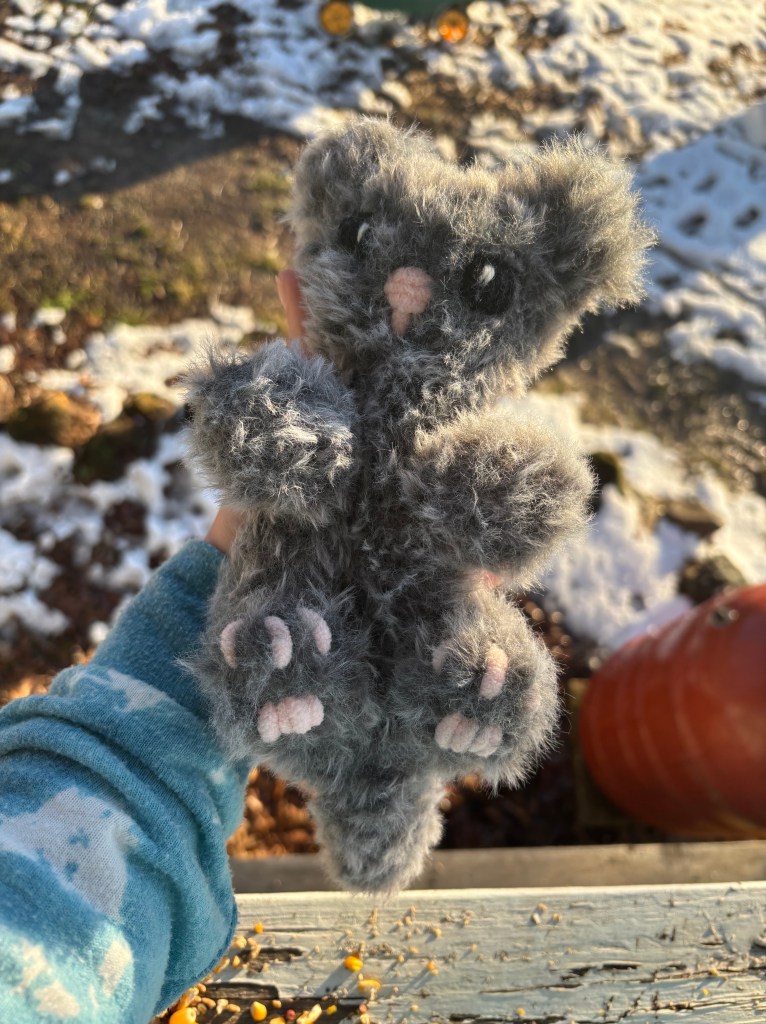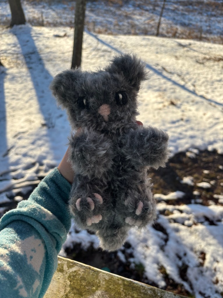 So happy with how this little kitty turned out! I think the next one I make I’m going to try to stuff with a beanbag so the body is a bit weighted. I actually made mine just from watching a video of the assembly on Instagram because I couldn’t afford to spend more money on patterns that week lol!!
