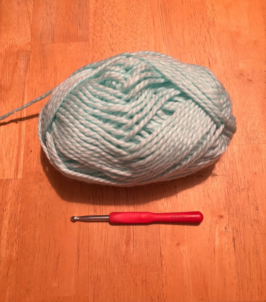 I prefer using chunky yarn and a larger hook size because I personally love the texture for blankets and because it works up much quicker, but feel free to use whatever is comfortable for you. Here I’m using Baby Bee Sweet Delight bulky (#5) weight yarn and an aluminum Boye J/6mm hook.