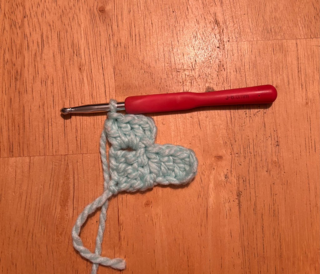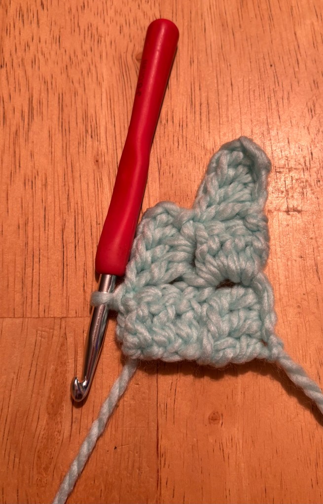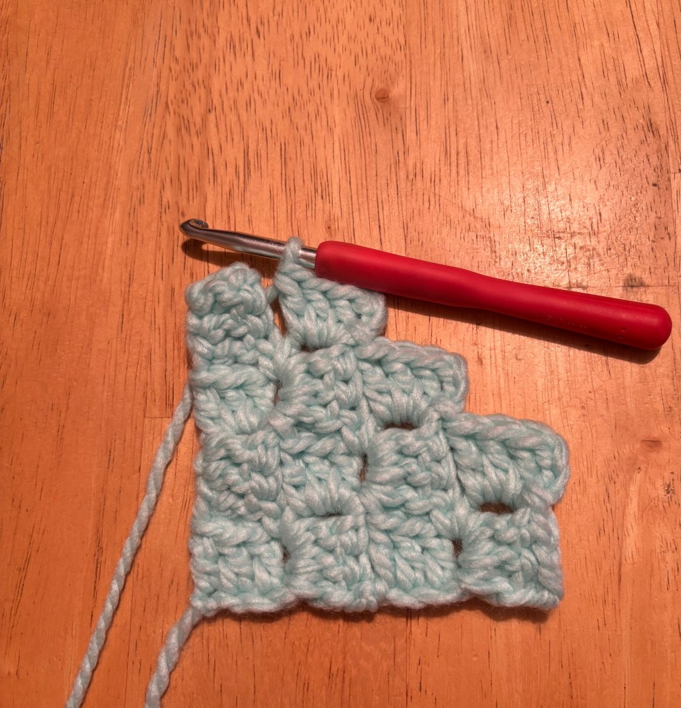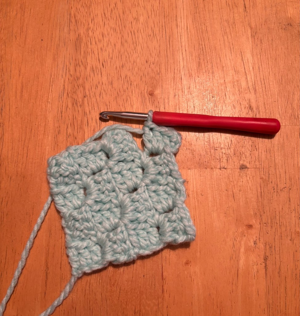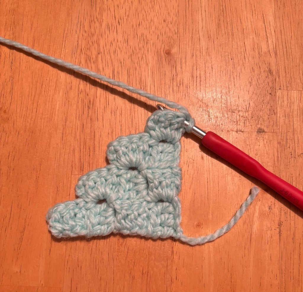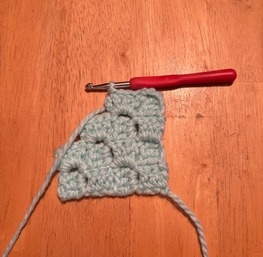 You should now have one block less than the last row. In my case I have 3 instead of 4. Turn your work to begin the next row.