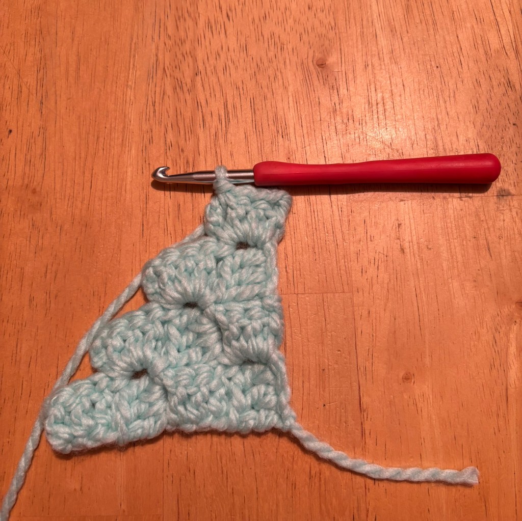 Turn your work and continue working each row in this manner until you have just one ch 3 remaining. This is your last row.
